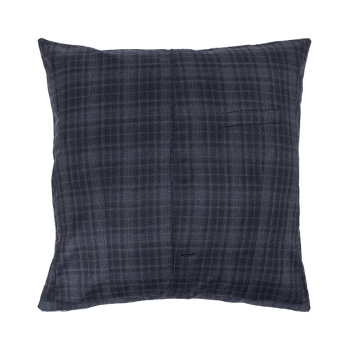 A sophisticated suit plaid pillow in steel grey and charcoal tones backed in metallic tone silver grey velvet. Supplied with a premium sustainable down insert.